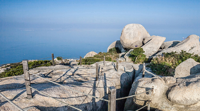 景区内奇石嶙峋,海狮石、海豹石、阴元石、鸡公石等,一线天、迷宫、飞来石穿插其中。到了四、五、六月份,经常是轻雾漫飘,是外伶仃岛独有、游客必去的景点。